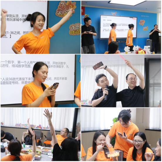 致辭結(jié)束后,生日會(huì)進(jìn)入互動(dòng)環(huán)節(jié),現(xiàn)場(chǎng)也瞬間化作歡樂(lè)的海洋。美食香氣四溢間,各類趣味游戲輪番登場(chǎng),徹底打破了平日里的工作嚴(yán)肅氛圍。在“表情包猜成語(yǔ)”環(huán)節(jié),技術(shù)人員一改往日專注敲代碼的沉穩(wěn)模樣,為了搶答成功,快速高舉手臂,甚至踮起腳尖,躍躍欲試的模樣引得全場(chǎng)笑聲不斷。最令人驚喜的當(dāng)屬法務(wù)和審計(jì)部門的“跨界表演”。這些平日里嚴(yán)謹(jǐn)認(rèn)真、專注于合同條款與數(shù)據(jù)表格的同事們,被青春洋溢的播恩學(xué)妹熱情邀請(qǐng),臨時(shí)上陣挑戰(zhàn)《愛(ài)你》舞蹈。沒(méi)有排練、毫無(wú)經(jīng)驗(yàn)的他們,動(dòng)作有的快半拍、有的慢半拍,甚至手腳“各自為政”,但卻絲毫不怯場(chǎng),努力跟上節(jié)奏的認(rèn)真模樣,搭配著略顯笨拙的舞步,讓現(xiàn)場(chǎng)充滿歡樂(lè)的氣氛,歡呼聲與掌聲此起彼伏……一個(gè)個(gè)游戲,一個(gè)個(gè)互動(dòng),笑聲與音樂(lè)聲交織,繪就出一幅溫暖而熱烈的團(tuán)隊(duì)情誼畫(huà)卷。