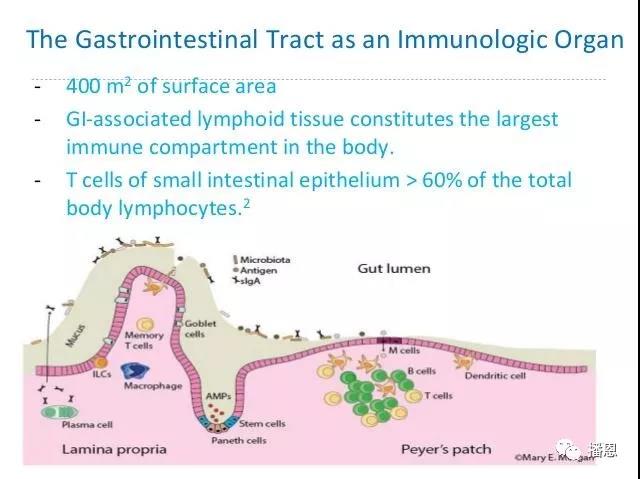 豬腸道的總面積有400m2,相當(dāng)于一個籃球場的面積,超乎想象吧!腸道是動物最大的免疫器官和防御系統(tǒng)。腸道內(nèi)的淋巴組織構(gòu)成了機體最大的免疫隔室,小腸上皮細(xì)胞內(nèi)的T細(xì)胞可占到全身淋巴細(xì)胞總量的60%多。