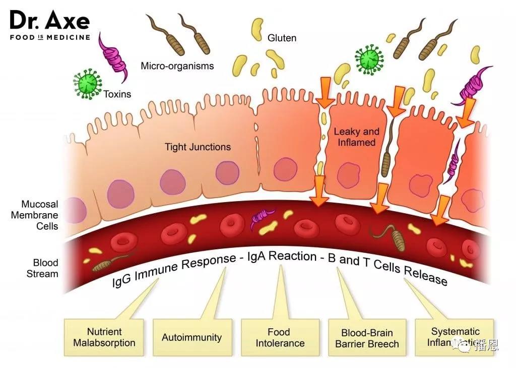 或許有人會感嘆,“哇,腸道實在是太強大了!”,但事實卻恰恰相反。如圖2,致病微生物(細(xì)菌或病毒)、毒素和抗原會隨飲水或飼料進入動物腸道,在這三者的共同作用下腸道上皮細(xì)胞被損害,如腸道上皮細(xì)胞間的緊密連接受損而出現(xiàn)空隙,致病微生物、毒素和抗原就會通過空隙侵襲到血液當(dāng)中,從而引起動物發(fā)病。