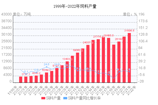 飼料產(chǎn)量總體增長,其中生物飼料以年均20%的速度遞增