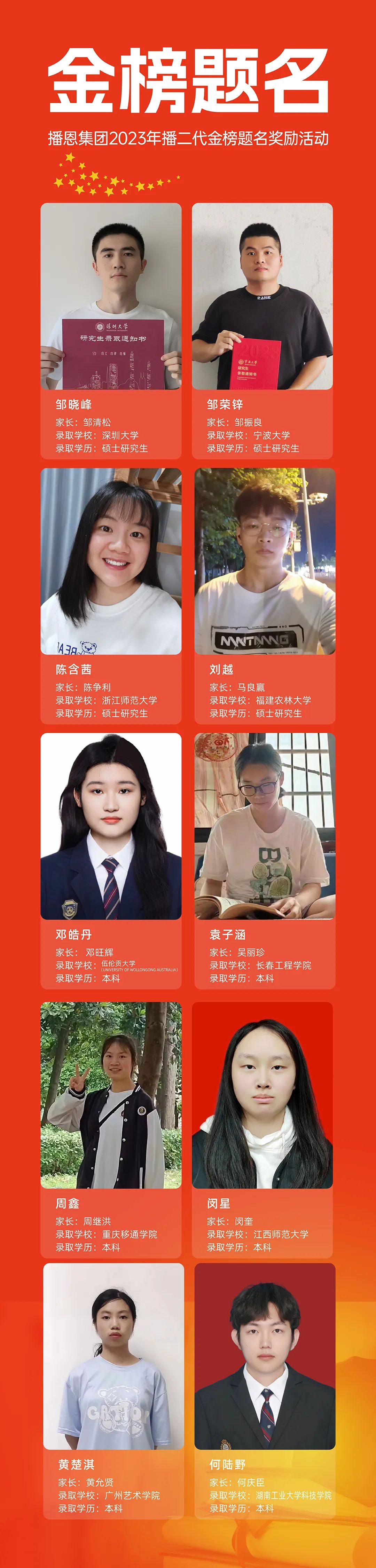 2023年集團職工子女有10人考入高校,其中碩士4人,本科6人。為鼓勵更多的“播二代們”成為有理想、有行動、有擔當?shù)那嗄?,同時也給職工帶來滿滿的歸屬感與榮耀感,集團除了現(xiàn)金獎勵外,還送上了董事長鄒新華先生的祝賀函、自著的《百煉成王—王陽明》一書、精美禮品等。我們也對其中一些具有代表性的家長進行了采訪,下面是他們的一些采訪紀實。