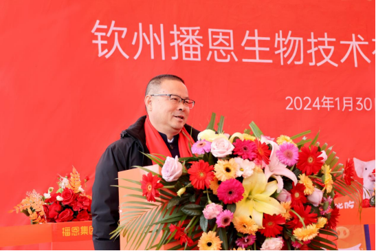 曾紹鵬總經(jīng)理在致辭時(shí)指出,養(yǎng)豬種糧是民生之本,飼料營(yíng)養(yǎng)是關(guān)鍵。播恩集團(tuán)作為中國(guó)飼料行業(yè)和飼料添加劑行業(yè)的領(lǐng)軍企業(yè),已于2023年在深交所上市。播恩現(xiàn)攜“合成生物”重器來(lái)奔赴八桂邕川之約,從廣西的入海口欽州起步,持續(xù)“傳播農(nóng)業(yè)智慧,提升生命品質(zhì)”事業(yè)之旅,走上播恩的鄉(xiāng)村振興之路。播恩中國(guó)4.0時(shí)代,將把“清潔、安全、高效、健康”帶給廣大家庭農(nóng)場(chǎng),帶給廣袤的八桂大地。播恩,致力于打造廣西生物飼料第一工廠。