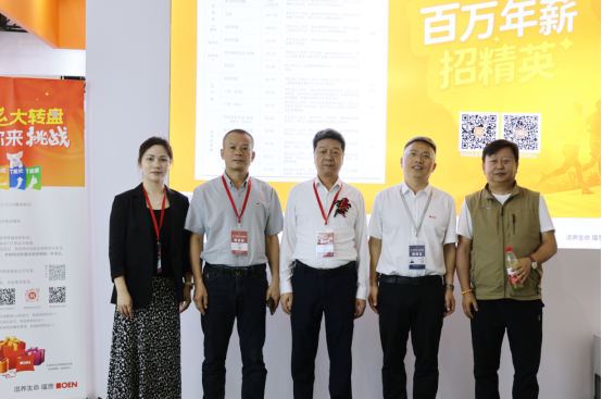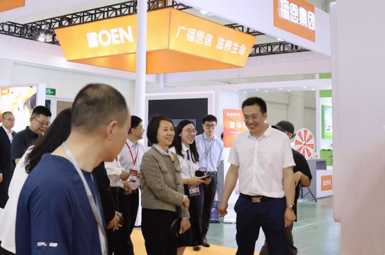 廣東省農(nóng)業(yè)農(nóng)村廳二級巡視員廖紀坤(圖左三)等領(lǐng)導一行蒞臨播恩展位參觀指導