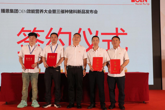 緊接著佛山工廠區(qū)曾慶昌總監(jiān)的主持下,曹總與宣威永和總經(jīng)理李家嚴(yán)、華昕集團(tuán)董事長(zhǎng)徐桂林、福安市博成飼料經(jīng)營(yíng)部總經(jīng)理薛光平、新羅區(qū)鑫農(nóng)飼料經(jīng)營(yíng)部總經(jīng)理俞石金舉行了簽約儀式。場(chǎng)內(nèi)一片歡騰,積極下單的客戶絡(luò)繹不絕,顯示出對(duì)新產(chǎn)品的高度認(rèn)可和期待。