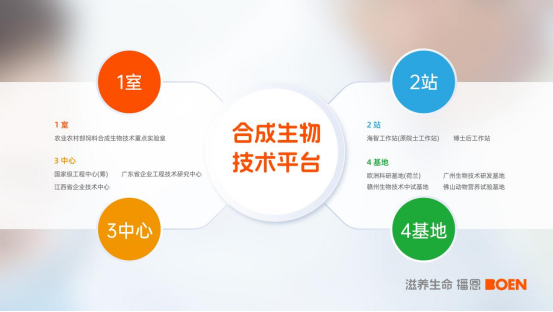 播恩集團(tuán)構(gòu)建了“1室2站3中心4基地”的技術(shù)創(chuàng)新與服務(wù)平臺(tái),即農(nóng)業(yè)農(nóng)村部飼料合成生物技術(shù)重點(diǎn)實(shí)驗(yàn)室,海智工作站(原院士工作站)、博士后工作站,國(guó)家級(jí)工程中心(籌)、廣東省企業(yè)工程技術(shù)研究中心、江西省企業(yè)技術(shù)中心,歐洲科研基地(荷蘭)、廣州生物技術(shù)研發(fā)基地、贛州生物技術(shù)中試基地、佛山動(dòng)物營(yíng)養(yǎng)試驗(yàn)基地。依托這一平臺(tái),播恩成功研發(fā)出以OEN效能營(yíng)養(yǎng)為代表的核心技術(shù),在動(dòng)物營(yíng)養(yǎng)技術(shù)創(chuàng)新領(lǐng)域持續(xù)領(lǐng)跑。