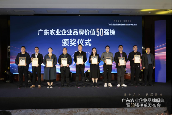 播恩集團(tuán)企劃經(jīng)理凌健瑩(圖左六)代表佛山播恩領(lǐng)取“廣東農(nóng)業(yè)企業(yè)品牌價(jià)值50強(qiáng)”榮譽(yù)